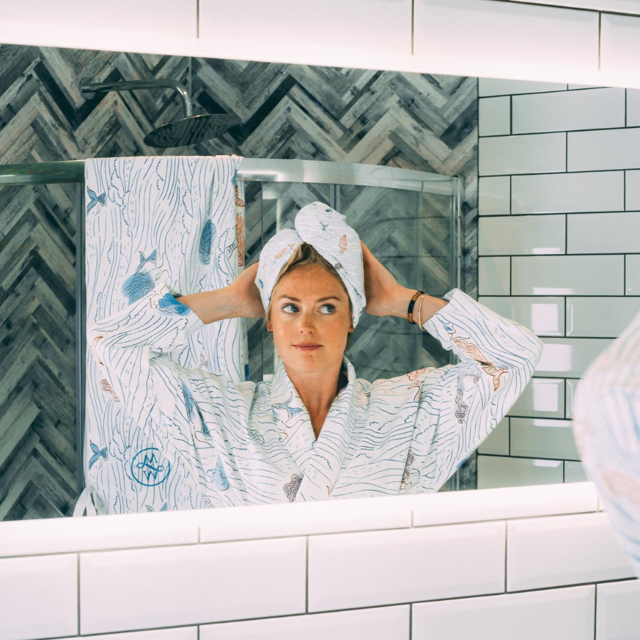 Quickly dries your hair. Reduces frizz. Looks incredible hanging on your bathroom door. Made from 100% recycled materials.