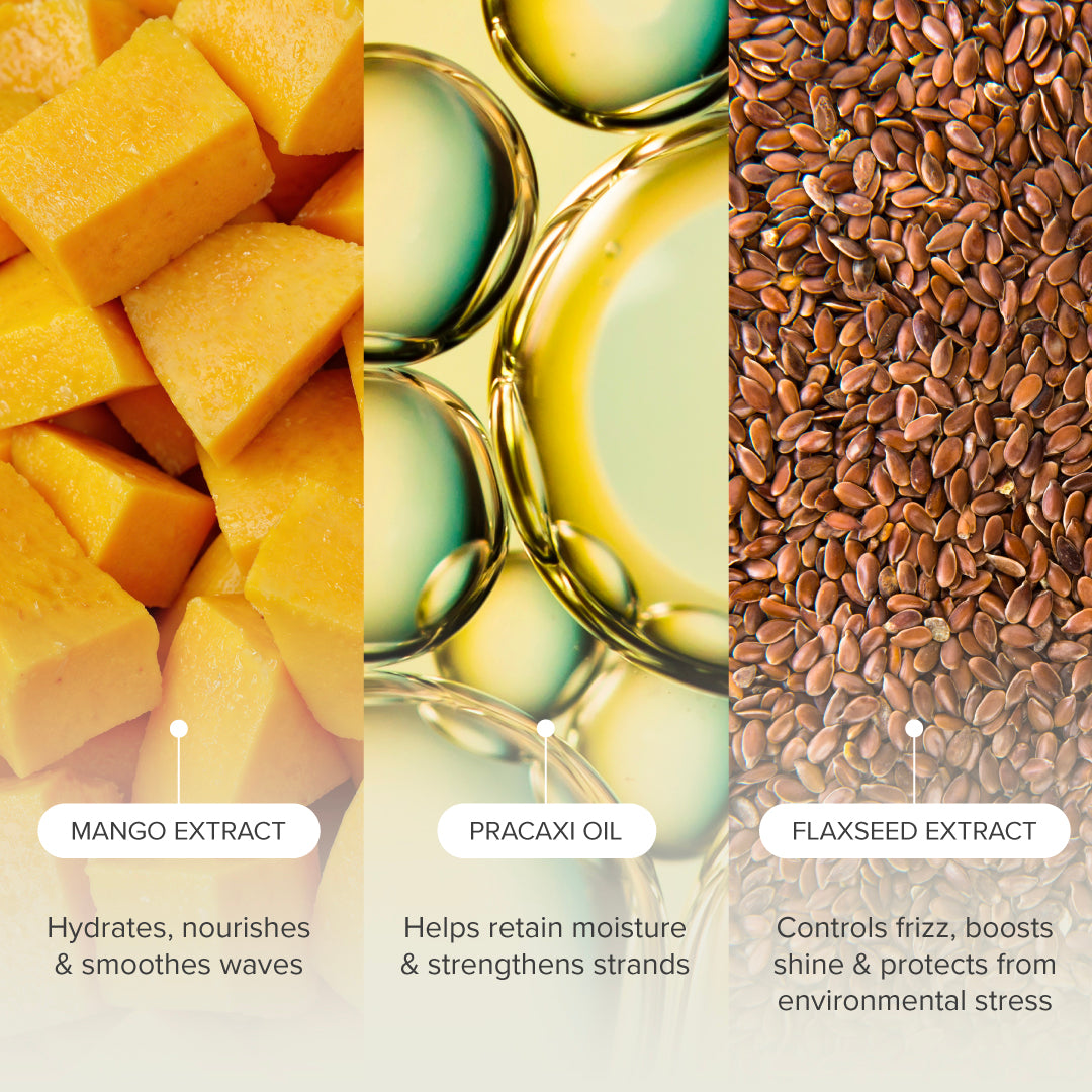 Packed with vitamin A and E which help hydrate and nourish. The emollient properties of mango help smooth the hair cuticle, improving overall texture and manageability.